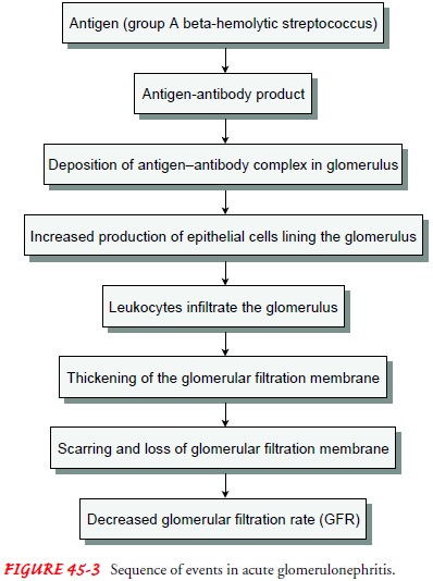 - This usually occurs 2-3 weeks after the streptococcal infection has taken place. This is characterized by diffused inflammation of the renal cortex (glomeruli) of both kidneys.