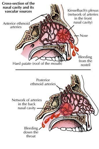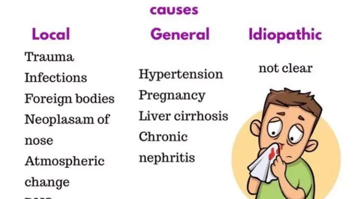 - While not a direct cause of epistaxis, poorly controlled hypertension can significantly aggravate existing nosebleeds by increasing hydrostatic pressure within the fragile nasal vasculature, making them harder to stop and more profuse. Severe epistaxis can also cause a transient rise in blood pressure due to anxiety.