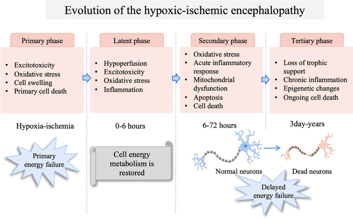The brain injury following a hypoxic-ischemic insult is not a single event but rather an evolving process that occurs in phases. This understanding is important to therapeutic interventions.